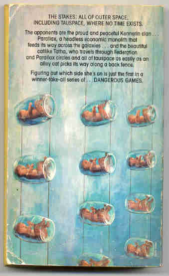 The one on the left is the 1976 first edition; the other is the 1979 reissue, both from Warner. The German cover from Moewig, which I haven't the heart to reproduce, is the exact same cover except blown up even bigger than the reissue. What was their excuse? |