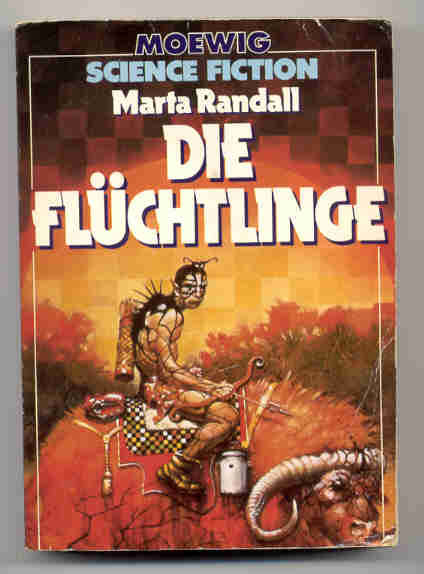 This is the British cover (1979, Hamlyn). Rumor has it that most European publishers buy cover-art by the running foot and slap it on in any old order. I can't prove that Hamlyn did this -- there are, after all, space ships in this book although I don't recall any red-rock deserts. But the real proof of the allegation is the German cover, below. |